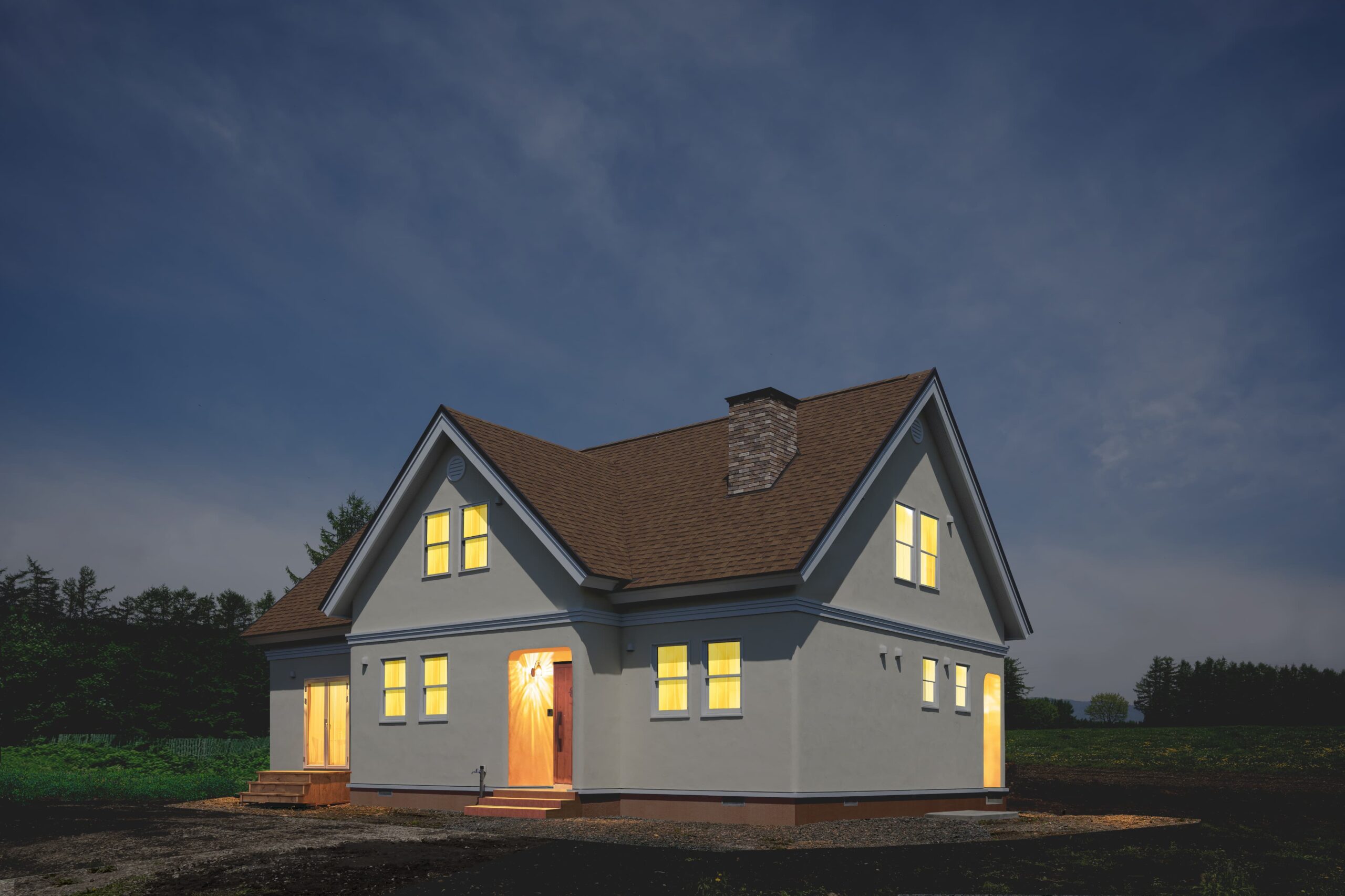 2024年にお引渡しさせていただいた鹿追の農家住宅、Tさま邸です。屋根の頂上から前後に傾斜する切妻屋根をベースに、正面にも三角屋根を組み合わせ、立体感のある外観にしています。 屋根材は耐久性、意匠性に優れるアスファルトシ […] -