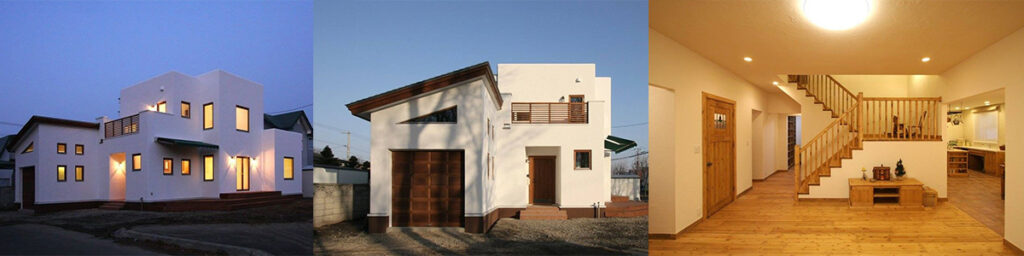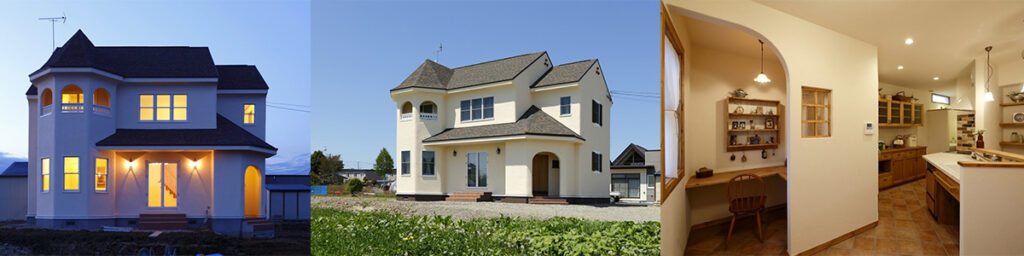 転機になったのは、帯広市内のホームセンターの住宅展示場に出展するモデルハウスの企画を任されたことです。末守が選んだコンセプトは、三角屋根・塗り壁・木製サッシ・自然素材を組み合わせたヨーロッパのカントリースタイル。当時の勤務先にとっては前例のないデザインでしたが、「自分が本当に住みたい家」を海外の雑誌などから研究しながら形にしていきました。