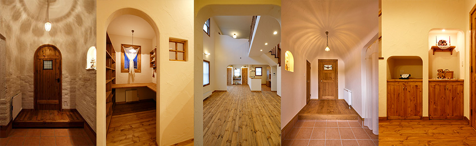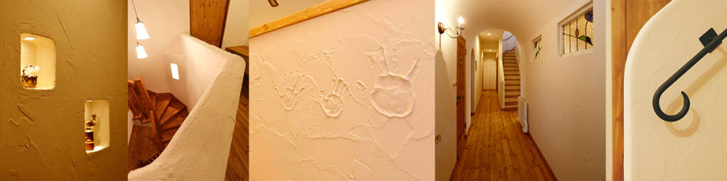 ドーム型の玄関やRに仕上げた壁