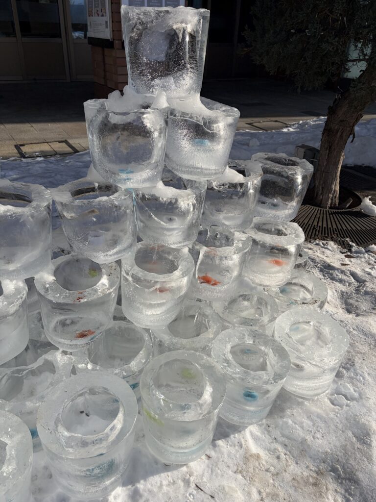 ホテル日航ノースランド前にもアイスキャンドル、夜はもっと綺麗なんだろうな~♪