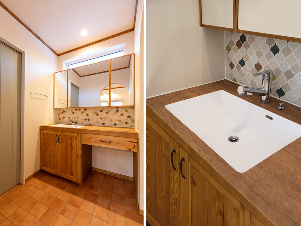 洗面台も使い勝手や扉などもデザインをお客様と打合せしてオーダーで制作できます。