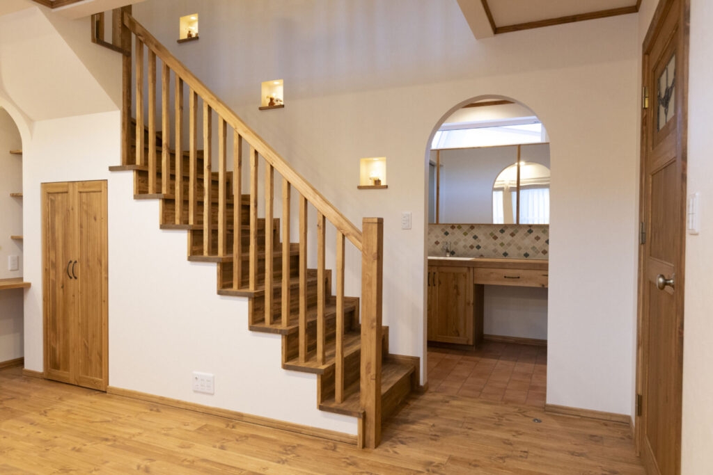 階段の手すりや室内の扉、アールの下がり壁、ニッチ収納なども、造作することで既製品だけでは実現できないオリジナリティが生まれます。