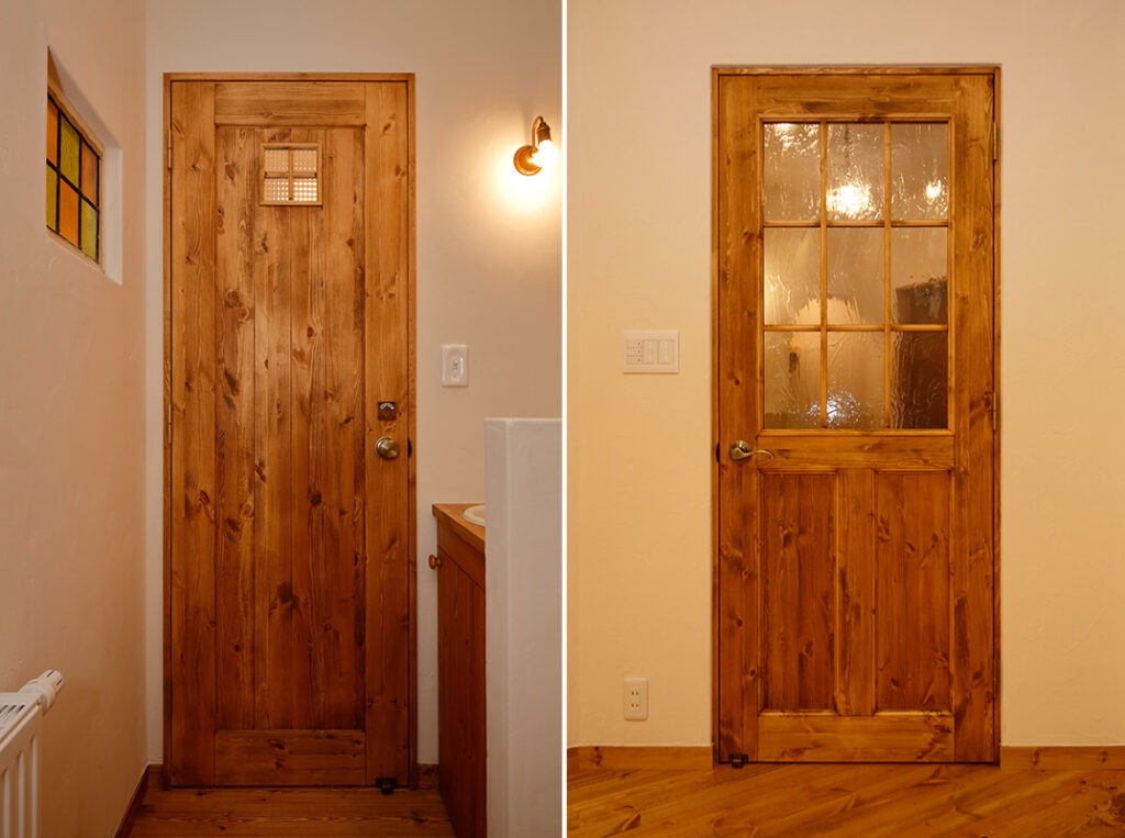 部屋の雰囲気に合わせ扉の素材、色、ガラスなどを自由に選べるのも造作の魅力です。