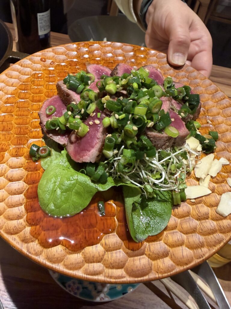 塩ラムとラムのたたき(燻してあってすっごく美味しかった)にビールがすすみます