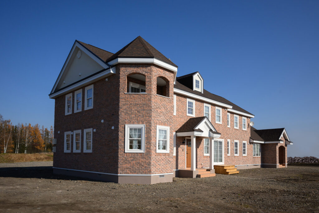 音更の広い空の下、十勝の農地に囲まれたレンガの家が今日も美しく佇んでいます。