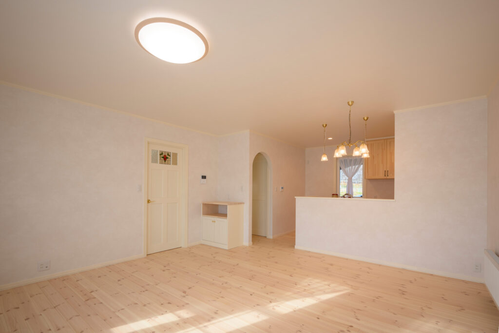 音更町で農業を営む3代目のご主人と奥さま。小豆、大豆、小麦、ビート——十勝の大地で作物を育て、息子さんへと農業を引き継いでいくご家族です。もともとの家は35年ほど前に建てたもので、隣接する別棟には、おじいちゃんおばあちゃんが住む家もありました。