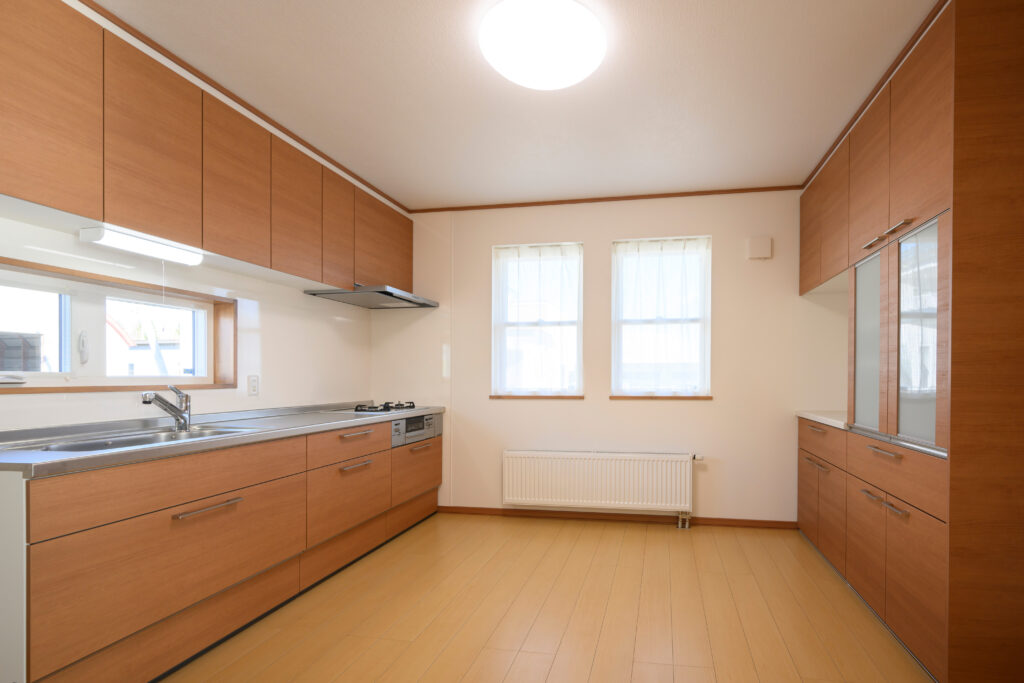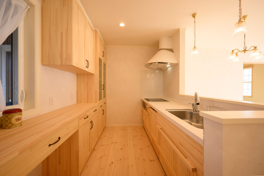 おじいちゃんおばあちゃんの居住スペースは、キッチンはIHではなく使い慣れたガスコンロを採用しました。ふたりとも80代で、仏壇などの火の始末、転倒、誤嚥など介護面の気配りが必要です。「別棟では、もし倒れた時に気づけない。家の中で繋がっているので食事の際など心配な時間帯には様子を見てサポートできます」と奥様は言います。