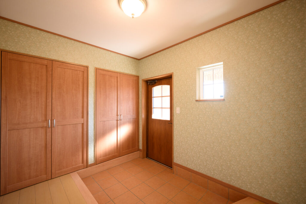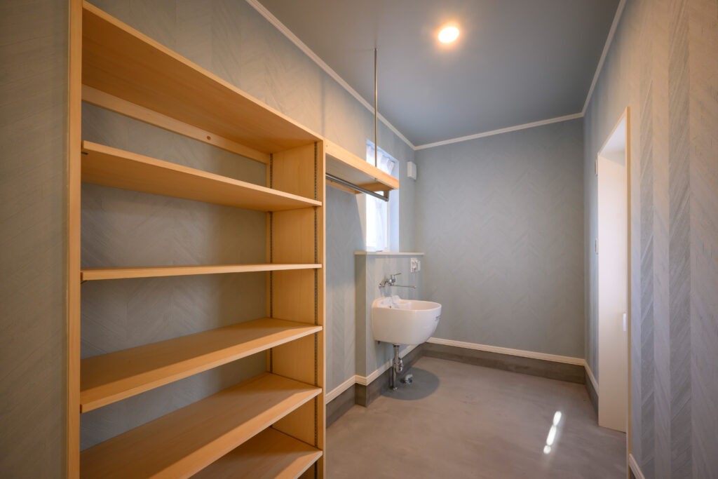 農作業から戻ったご主人が直接入れる裏玄関には、大きなシンクと作業着用の洗濯機を別に設置しました。泥だらけの長靴や作業服を、居住スペースに持ち込まずに済みます。「農家には本当にありがたい設計です」と奥さま。